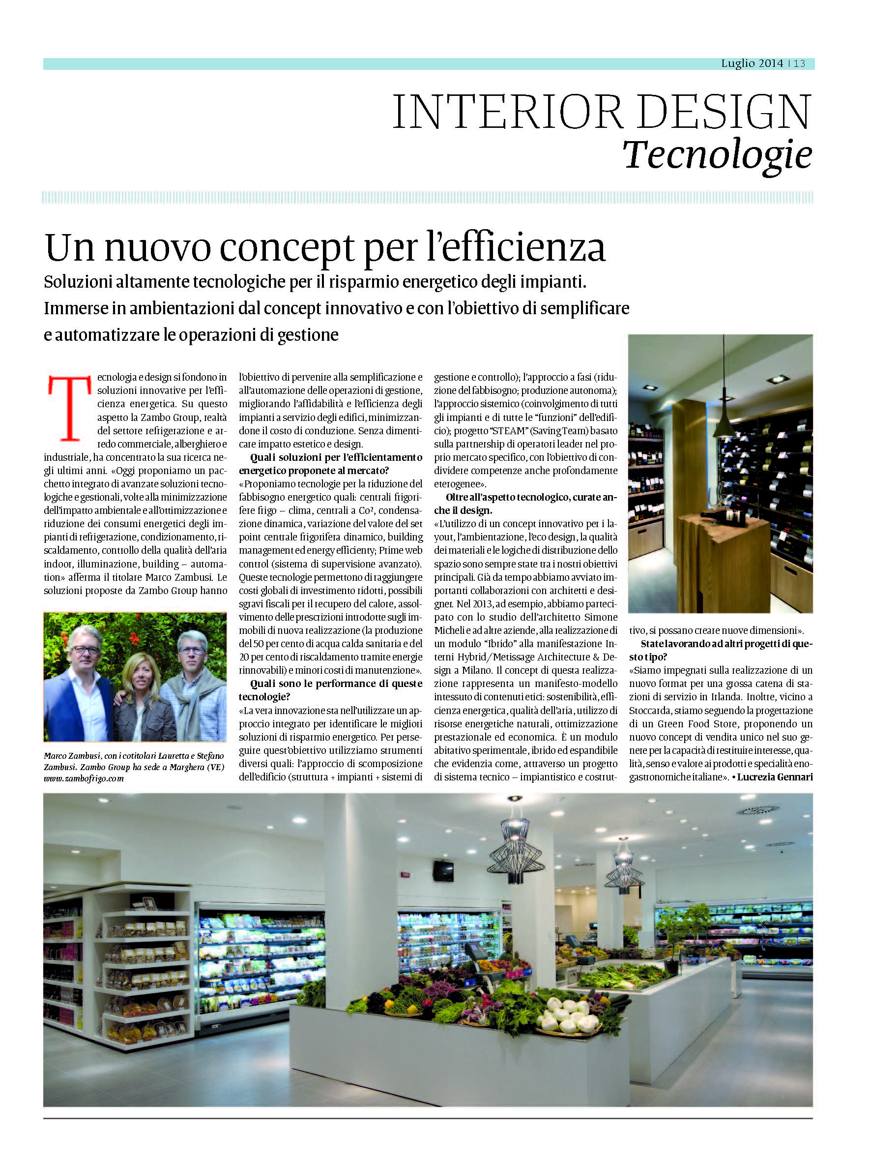 Intervista a ZAMBO GROUP su INTERIOR DESIGN il supplemento del quotidiano "Il Giornale" (UK)